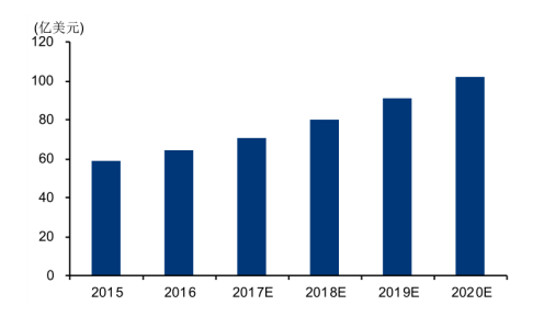 我國安防行業保持了快速增長的勢頭,產業技術、消費市場以及企業品牌建設等方面均快速提升,產業內涵逐漸延伸,形成了集研發、制造、施工、集成、運營、銷售服務等為一體的產業鏈,視頻監控、實體防護、防盜報警、防爆安檢、出入口控制等系統全面發展。目前,我國已經成為全球最重要的安防視頻監控市場之一,也是全球最大的安防視頻監控產品制造地。數據顯示,2016年我國視頻監控市場總收入約64億美元,根據預測,2020年我國視頻監控市場約102億美元,年均復合增長率預期為12%左右。