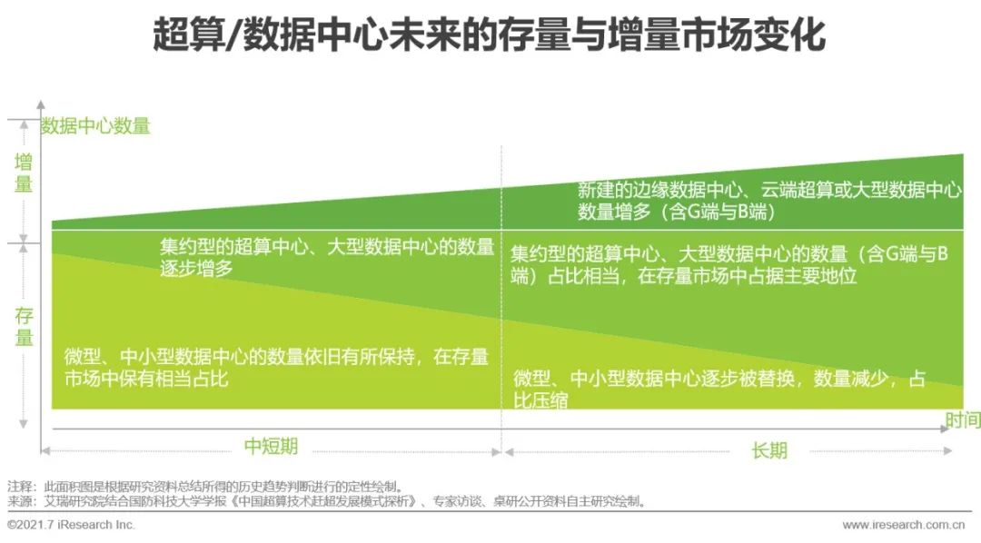 從市場變化趨勢來看:1)存量市場:日漸增加的AI計算負載需要處理力更強、能耗承受度更大的數(shù)據(jù)中心,同時,一系列有關(guān)控制數(shù)據(jù)中心PUE值的節(jié)能審查規(guī)定相繼出臺,一味盲目擴建、新建數(shù)據(jù)中心已難合時宜,促進老舊數(shù)據(jù)中心綠色化改造的減量替代方案因此誕生。微型、中小型數(shù)據(jù)中心會逐漸被改造為集約型的大型數(shù)據(jù)中心,符合節(jié)能減排相關(guān)標準、機柜數(shù)量與異構(gòu)組合增多的集約型超算/數(shù)據(jù)中心將在存量市場中占據(jù)主流。2)增量市場:考慮到邊緣計算可分擔AI計算任務、兼具低延時優(yōu)勢,管理邊緣計算中心則需要布局相應的大型云端數(shù)據(jù)中心,故增量市場會被異構(gòu)的邊緣計算數(shù)據(jù)中心與云端超算或大型數(shù)據(jù)中心擴充。